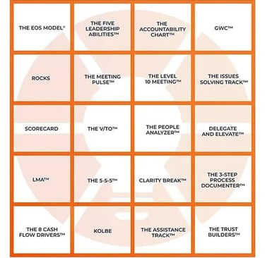 EOS Toolbox tidak berisi teori manajemen yang kompleks. Sebaliknya, ia menawarkan tools yang sederhana namun sangat disiplin dalam penerapannya. Setiap alat dirancang untuk memperkuat satu atau lebih dari enam komponen inti bisnis: Vision, People, Data, Issues, Process, dan Traction.